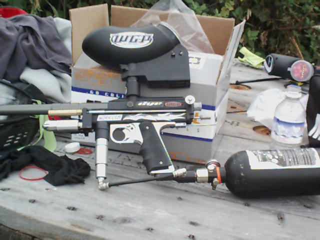2k1 Vert Feed Autococker - Black Benchmark Slide Trigger - Chrome Shocktech BOMB 3 way - Black Dye Rock Regulator - Chrome with Silver adjuster(off a dye ultralite) 14" Ceramic Barrel